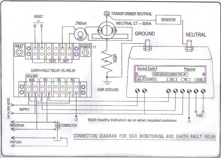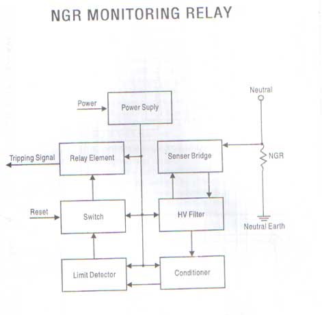 In respect of the above, it becomes necessary to install a device that will enclose a fall-safe operation of NGR and the grounding system. The device will continuously monitor the continuity of NGR and neutral grounding connections. And will trip the geeder circuit breaker as and when An open circuit takes place in the neutral grounding connections or in the neutral grounding resistor (N.G.R.). The device will ensure failsafe operation of neutral grounding system.