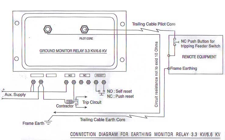 In respect of the above, it becomes necessary to install an additional monitoring and protection device that will provide a long term safety measure for the above earthing system. This/ additional monitoring and protection device will continuously monitor the continuity of the trailing cable earth core from the field-switch earth point to the equipment body. This monitoring and protection deice will sense any un-noticed discontinuation of the trailing cable earth core for whatsoever reason even for short circuit in the trailing cable or else and trip the field switch.